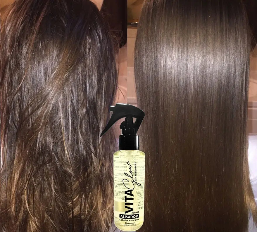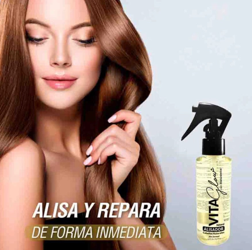 VITAGLOW TRADICIONAL con Ácido Hialurónico y Colágeno que alisa hasta el 90% tu cabello, dejándolo brillante y suave. Sus resultados duran hasta 3 meses Y lo mejor: lo aplicas tú misma en casa, solo con secador y plancha. ¡Sin peluquería, sin complicaciones!